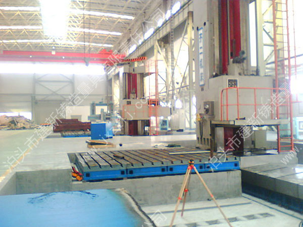 ,本產品是為齊二機床廠配套的落地鏜銑床平臺。落地鏜床工作臺是機床工作臺的一種,主要用于機床加工工作平面的使用,上面有孔和T型槽,用來固定工件和清理加工時產生的鐵屑,在工業生產中獲得廣泛應用。